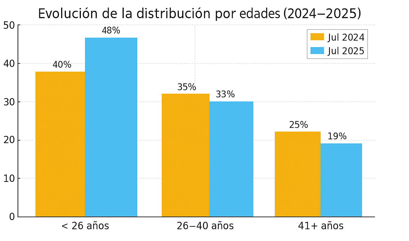 - Menores de 26 años: del 40 % (2024) al 48 % (2025).